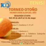 Categorías: SINGLES: Damas 3º, Caballeros 1ª, 3ª y 5ª